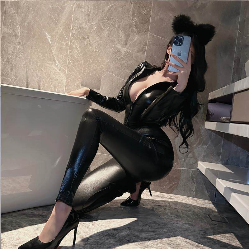 cosplay胶衣紧身连身漆皮衣漫展夜店演出小恶魔女友PU开裆气质