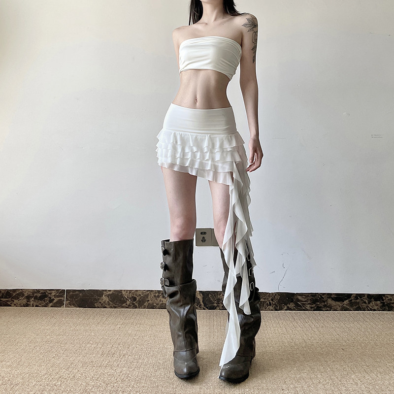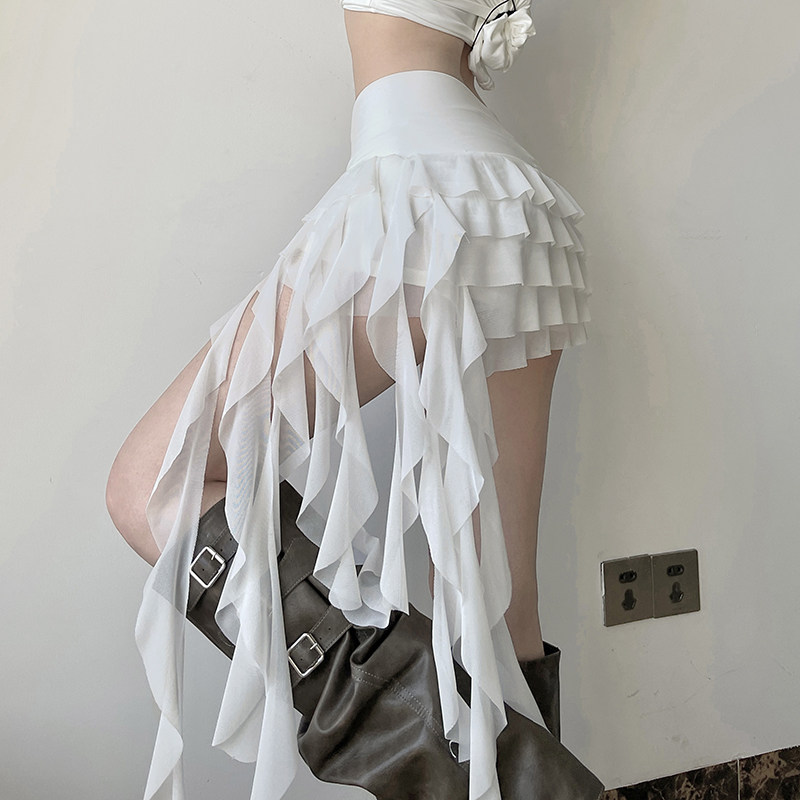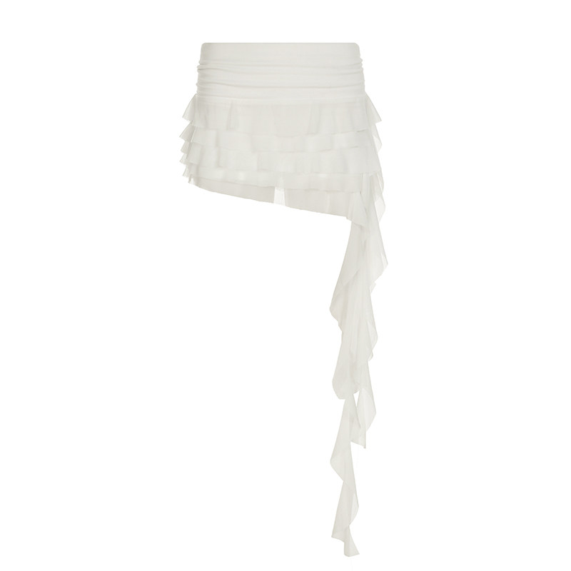 Amyway复古不规则单边流苏褶皱半身裙街头百搭气质短裙荷叶边裙裤