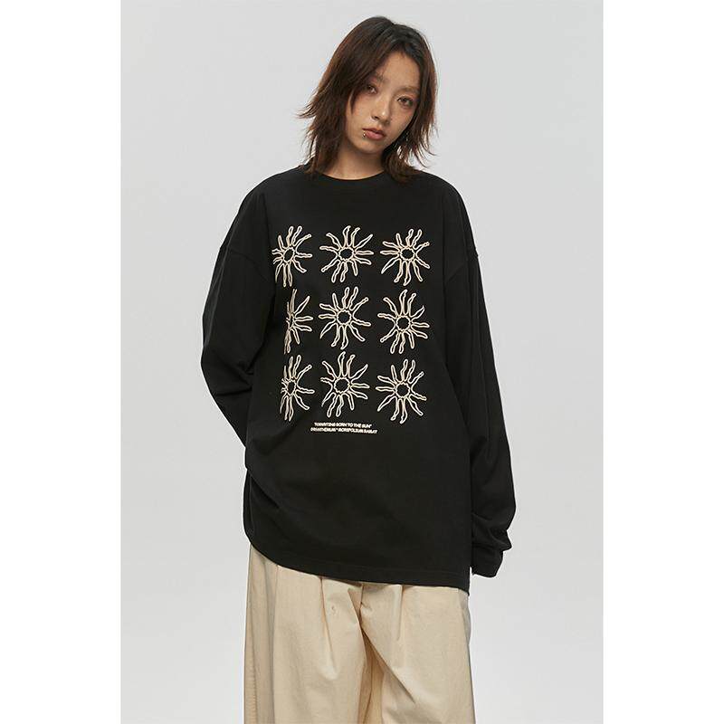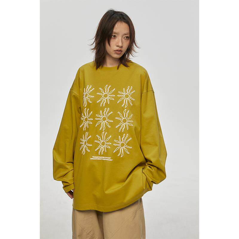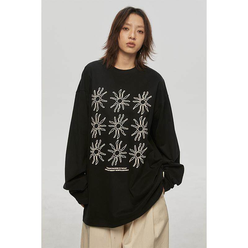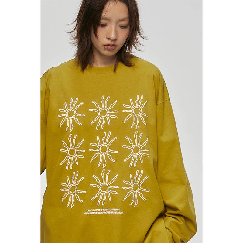 FROM t恤女春秋打底上衣穿搭 WRTING字由韩系太阳花印花慵懒感长袖