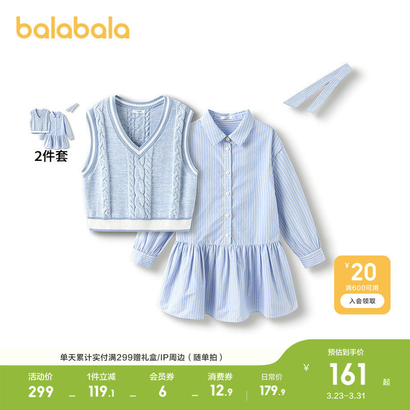 巴拉巴拉童装 两件套裙子甜马甲连衣裙 女童连衣裙儿童2026春秋新款
