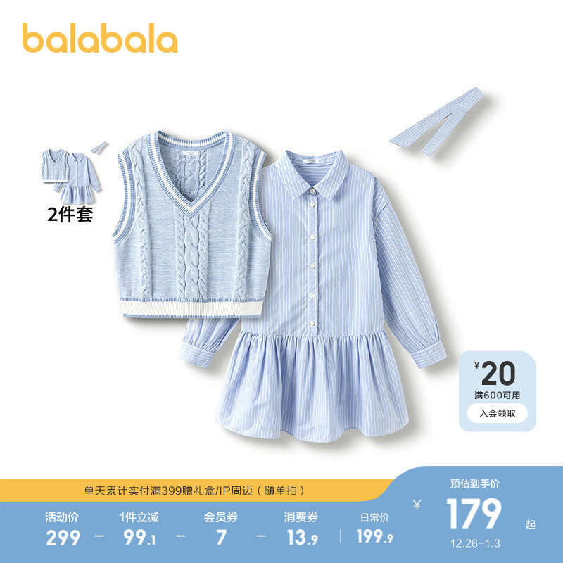 巴拉巴拉童装 两件套裙子甜马甲连衣裙 女童连衣裙儿童2025春秋新款