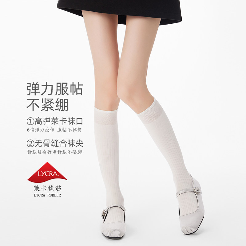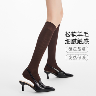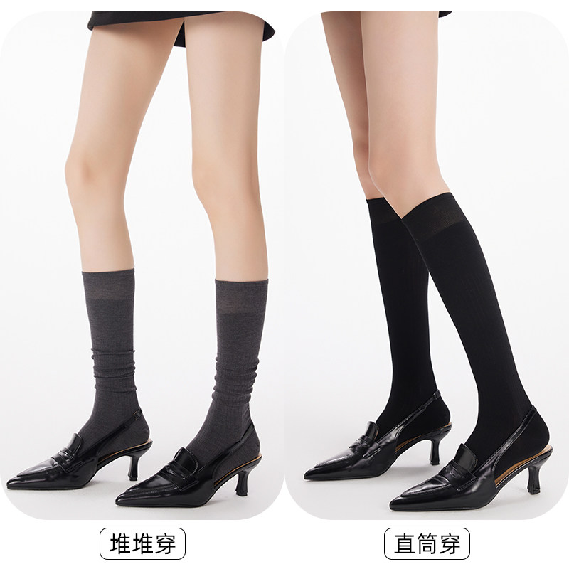 红色无骨长筒袜子女士春秋薄款 羊毛小腿堆堆袜日系微压显瘦及膝袜