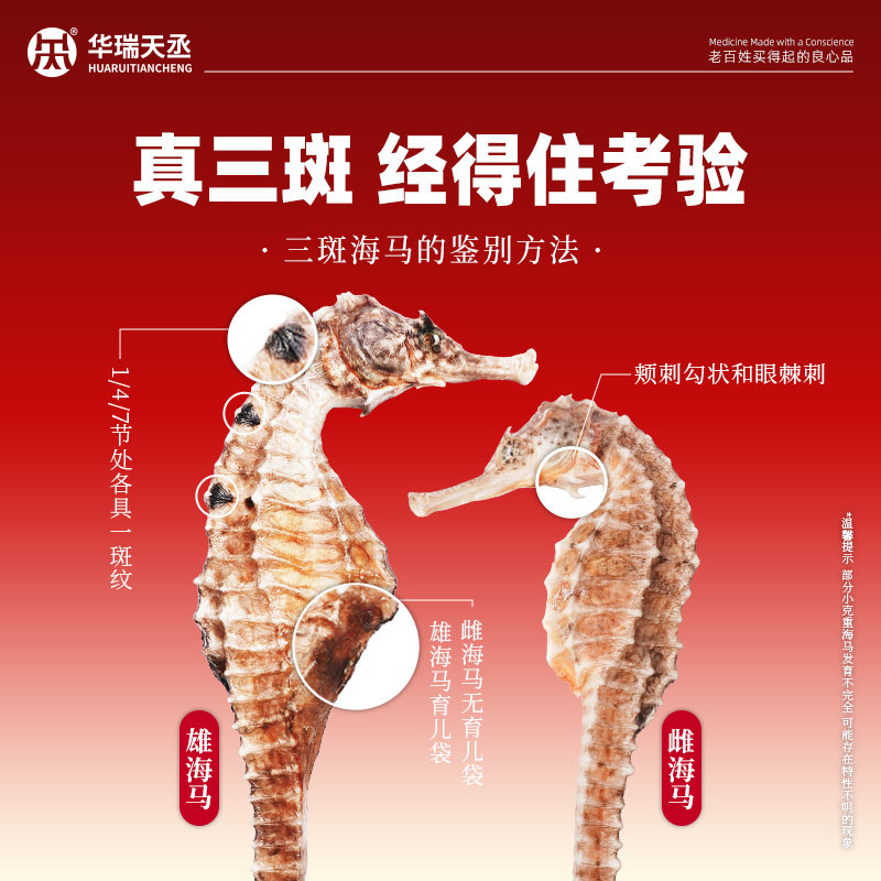 三斑海马干中药材田七煲汤鹿茸泡酒料包一公一母配对 华瑞天丞