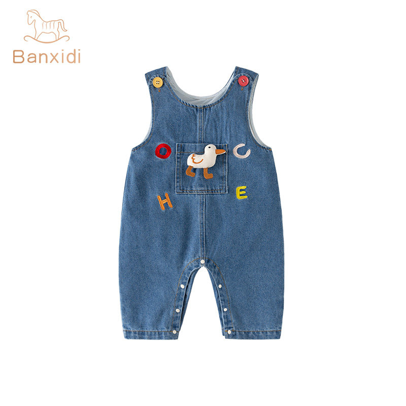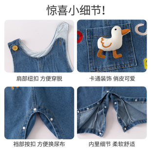 外出服春秋季 班喜迪婴儿衣服春装 婴幼儿连体衣宝宝卡通牛仔背带裤