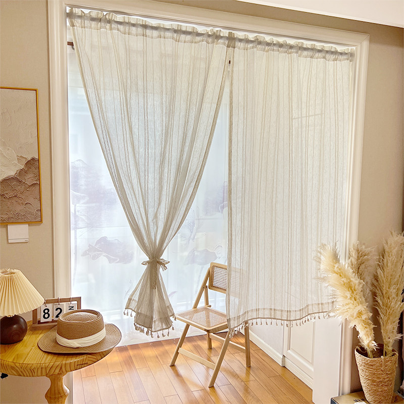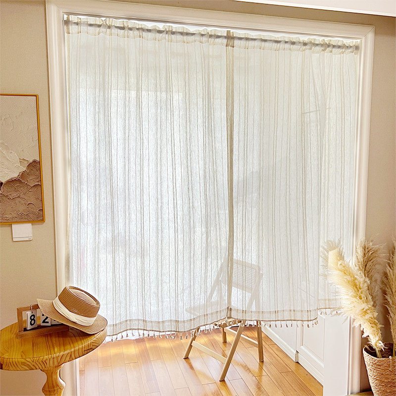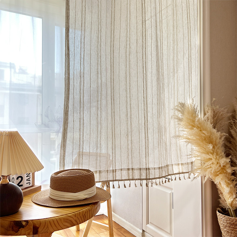 日式 侘寂风亚麻门帘玄关厨房遮挡帘飘窗遮光半帘短帘免打孔纱帘