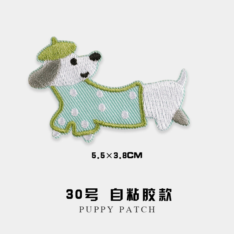 自粘免缝布贴卡通小狗补丁刺绣香肠狗衣服裤 饰贴花补洞 子破洞装