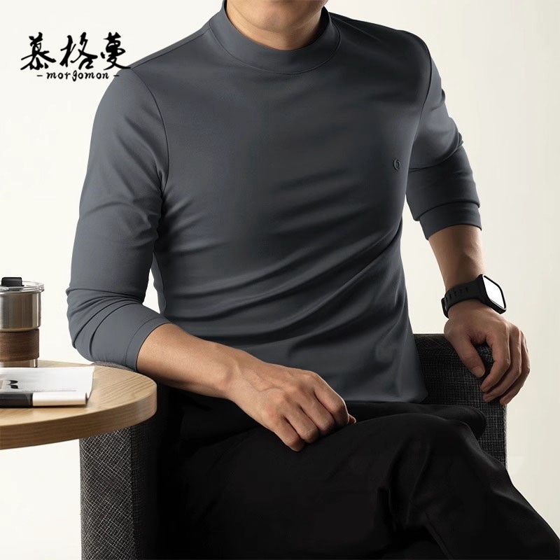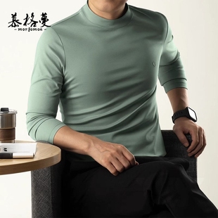 修身 春秋冬百搭秋衣纯棉T恤打底衫 内搭上衣男 T恤男士 半高领长袖