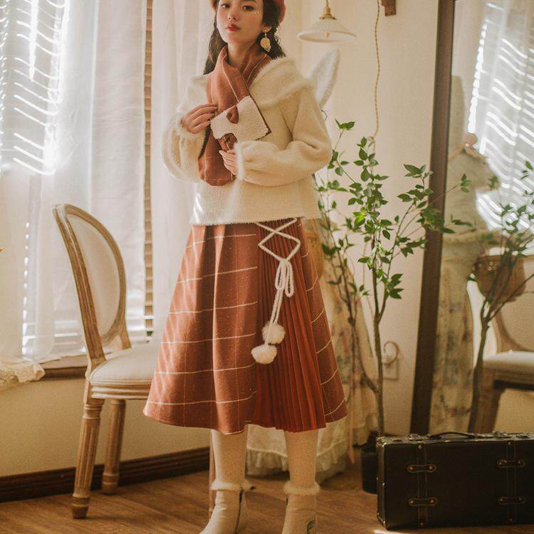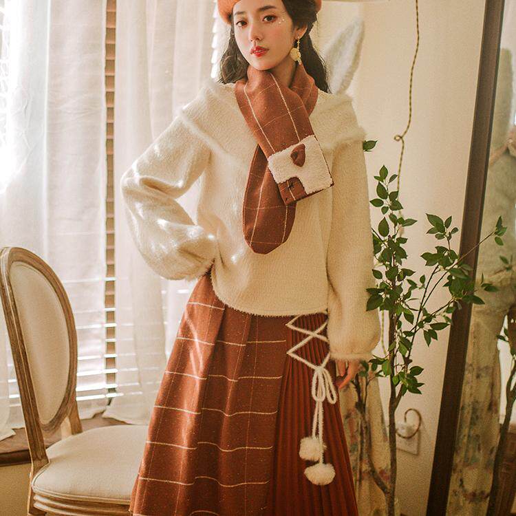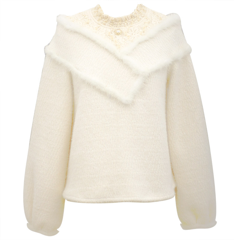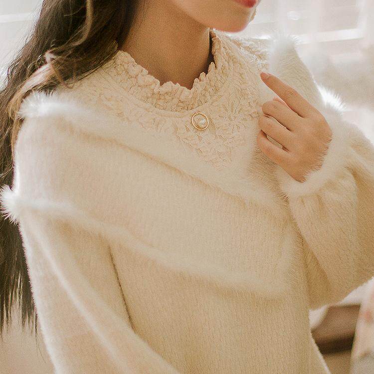 新 原创慵懒软奶系高级感杏色毛衣女仿貂毛针织衫 花间裳 昆仑煮雪