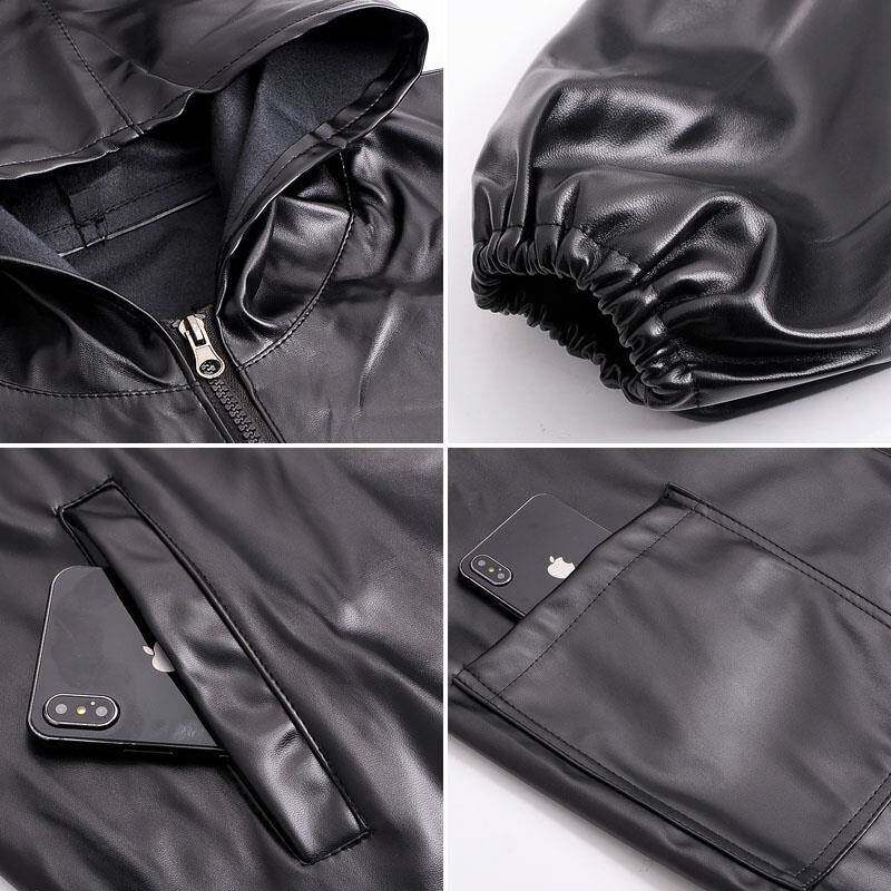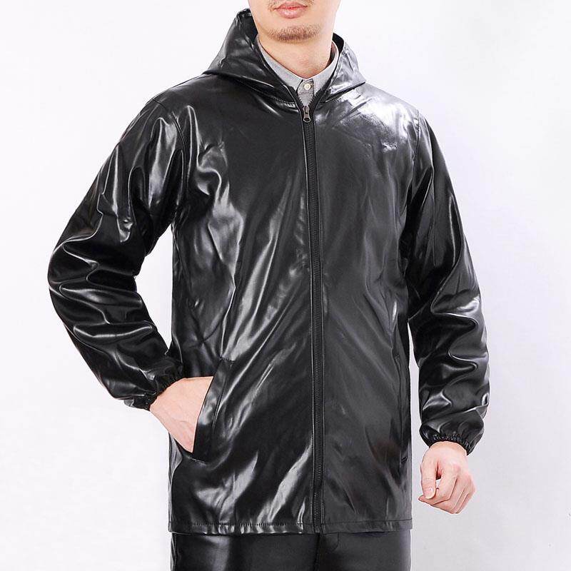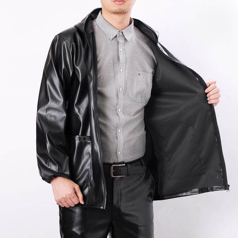干活穿宽松皮衣工作服中老年男士 防水防油耐脏屠宰养殖劳保皮外套