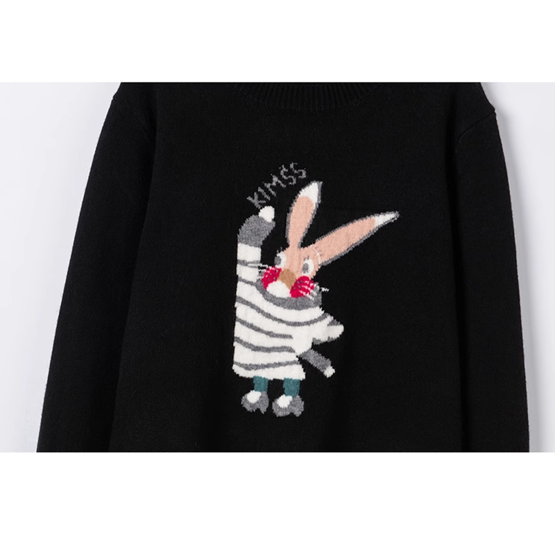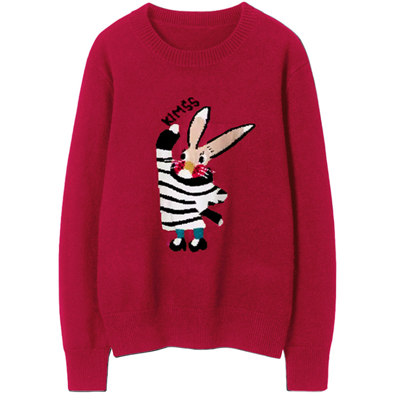 卡通减龄兔子提花针织衫 上衣韩版 女圆领套头 100%山羊绒衫 敲可爱