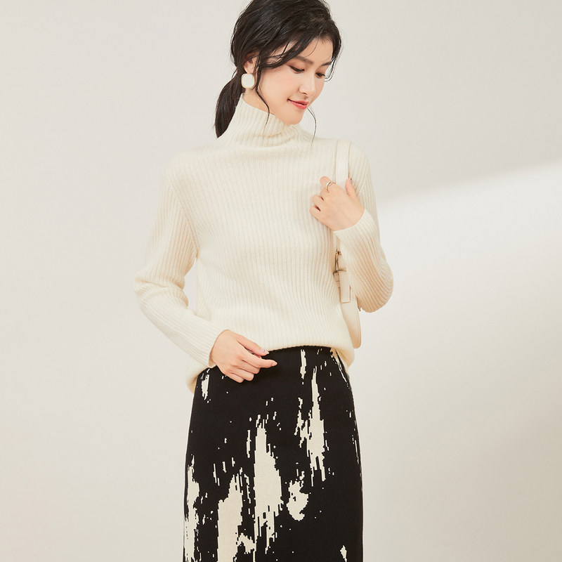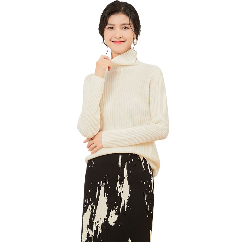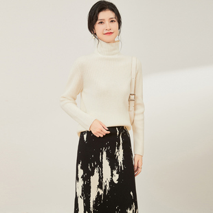 100%羊绒衫 慵懒高级感内搭可外穿黑白色高领毛衣 女秋冬羊毛打底衫