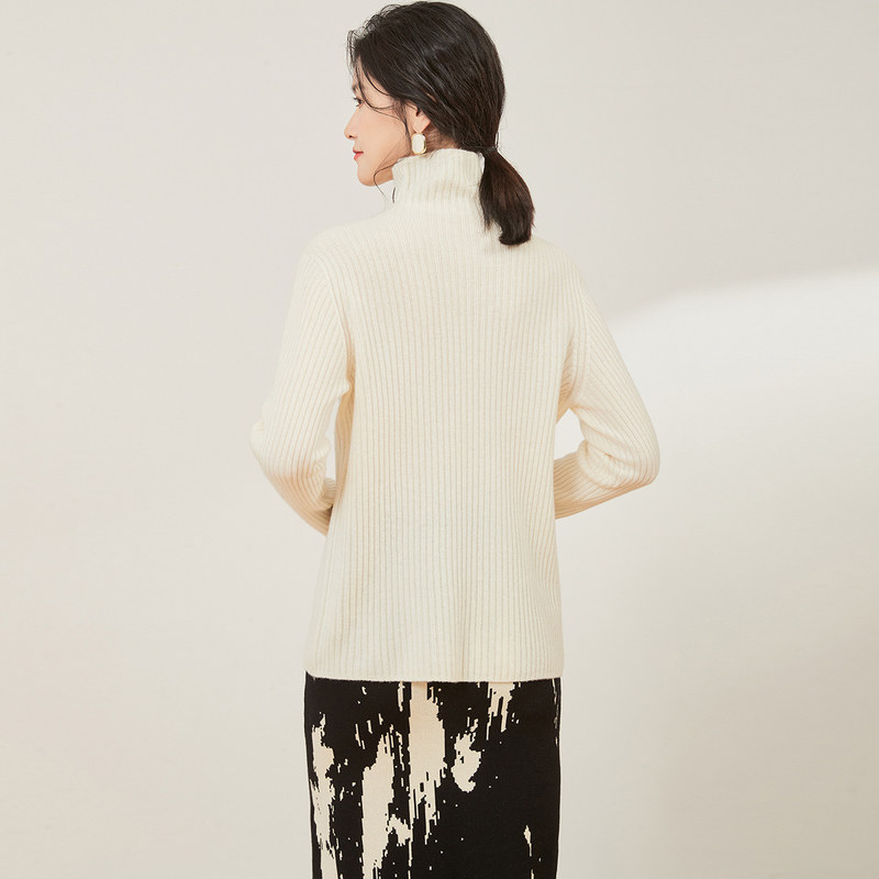 针织打底衫 品牌高级感羊毛衫 女半高领宽松毛衣秋冬加厚羊绒长袖