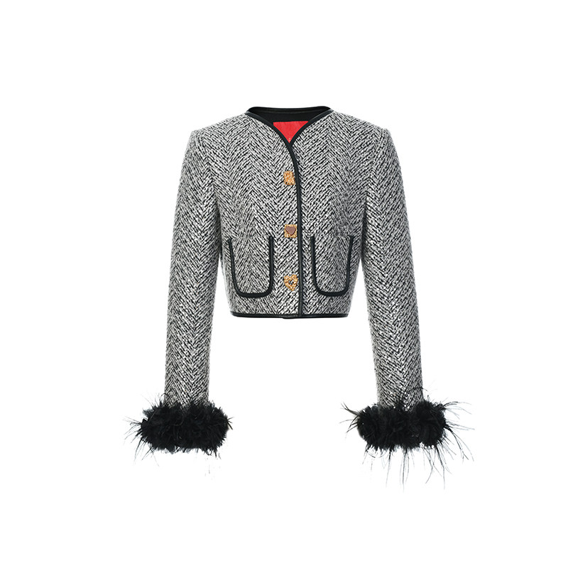 花朵羽毛装 lefame拉飞姆秋季 饰人字纹外套 明星同款