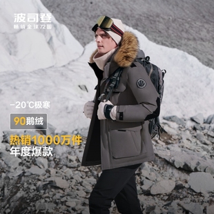 户外保暖毛领羽绒服男女情侣 波司登极寒鹅绒冬季 热销爆款 明星同款