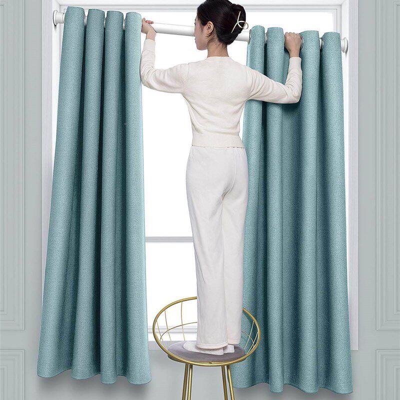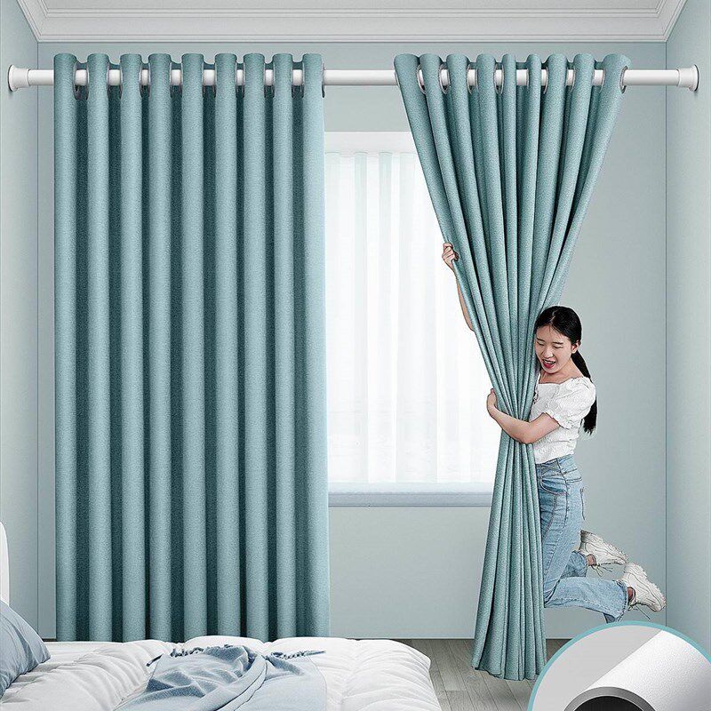卧室窗帘免打孔安装 布小窗户现货 飘窗伸缩杆一整套全遮光简易新款