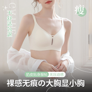 无痕内衣女夏季 大胸显小提拉防下垂收副乳聚拢缩胸显瘦文胸罩 薄款