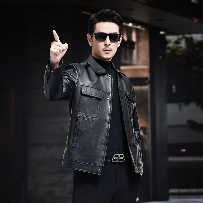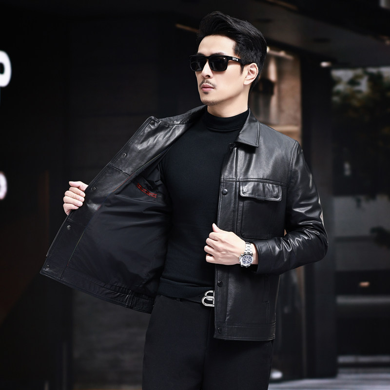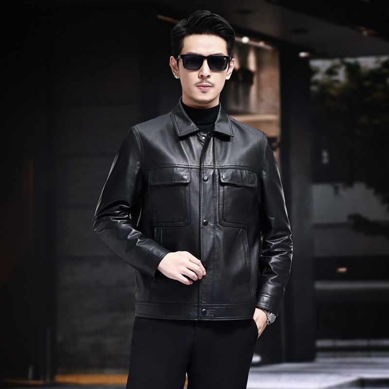 真皮上衣 外套翻领休闲单款 海宁真皮皮衣头层牛皮夹克男士 春秋季