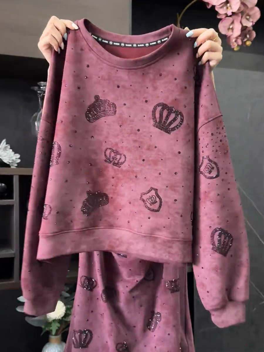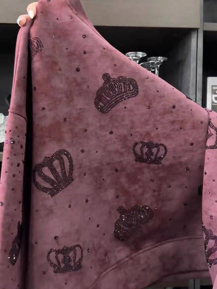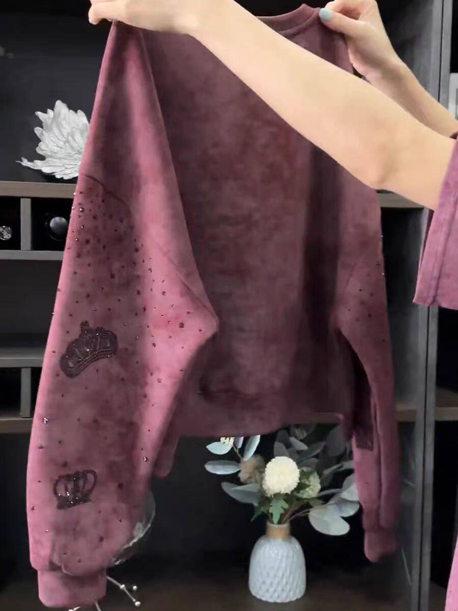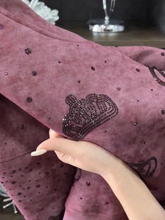 宽松百搭显瘦上衣潮 新款 欧货重工烫钻皇冠短款 圆领卫衣女2024秋季