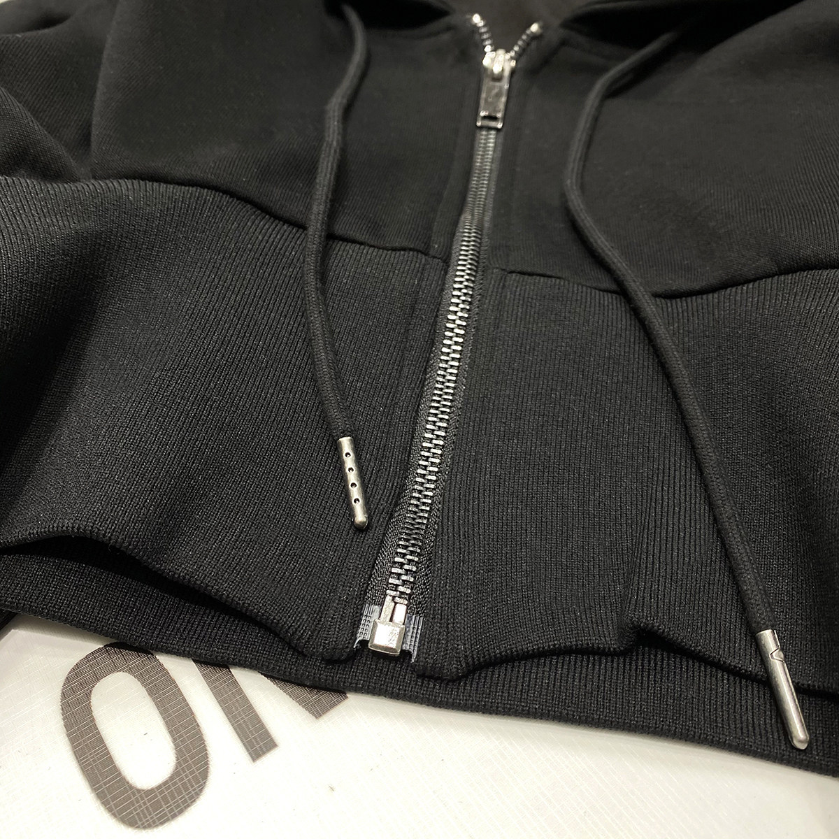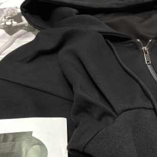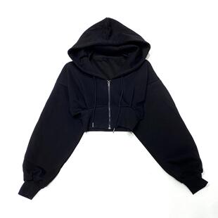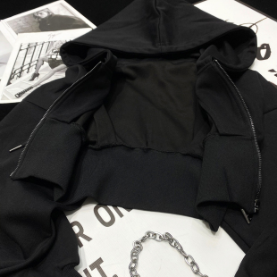 CCA自制辣妹黑色短款 超短拉链夹克外套女潮 连帽卫衣收腰运动帽衫