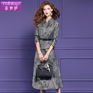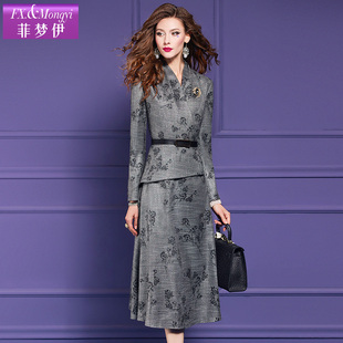 菲梦伊印花西装 复古高端别致设计感收腰假两件职业裙 连衣裙女秋季
