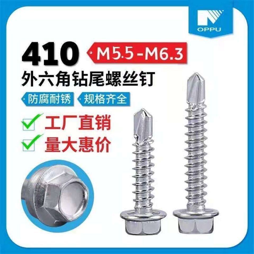 410不锈钢外六角钻尾螺丝自攻自钻燕尾丝彩钢瓦螺丝钉M5.5M6.3