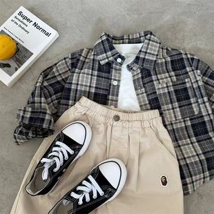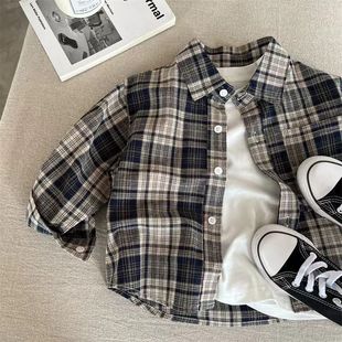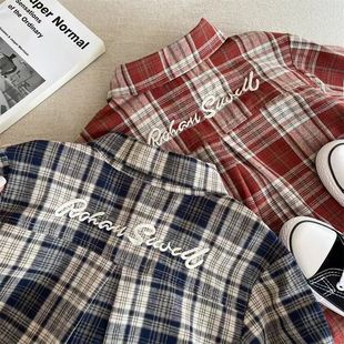 夹克宽松翻领长袖 复古棋盘格子牛仔衬衫 衬衣男秋 美式 马登工装