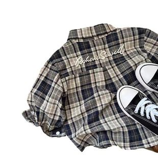 复古男友风异色格纹对称翻领拼接长袖 茉莉雅集 衬衫 WCS08171