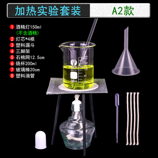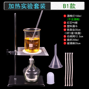 酒精灯加热套装 水沸腾了烧杯试管滴管三脚架温度计玻璃棒石棉网全套化学实验室器材水温实验手工自制口红套餐
