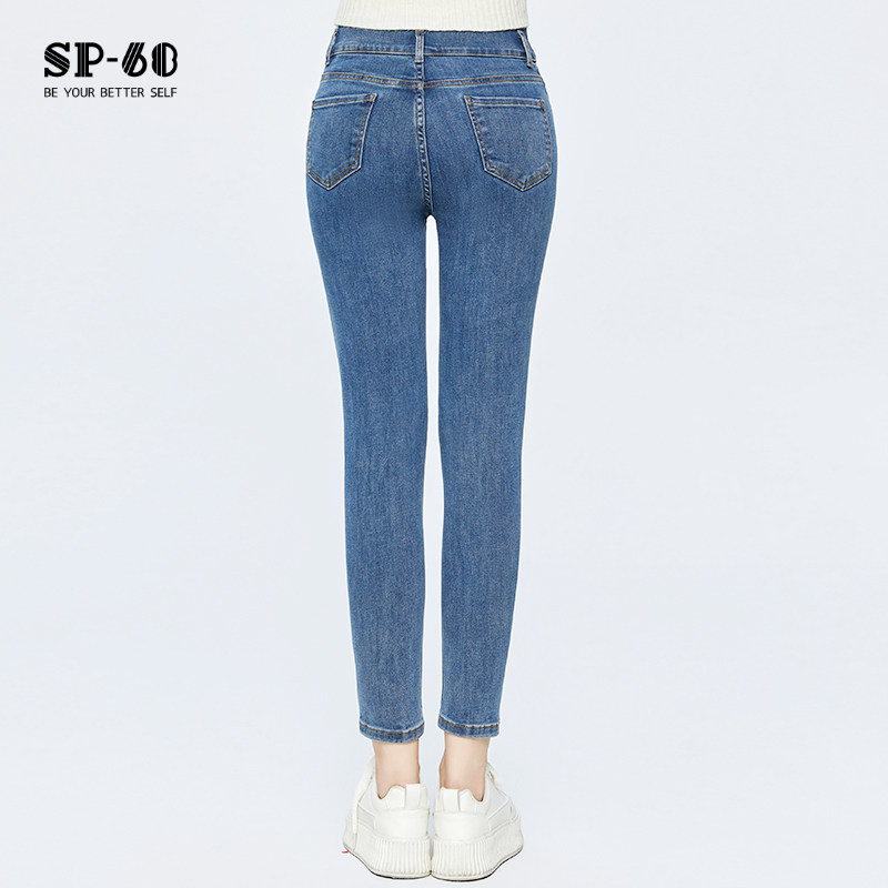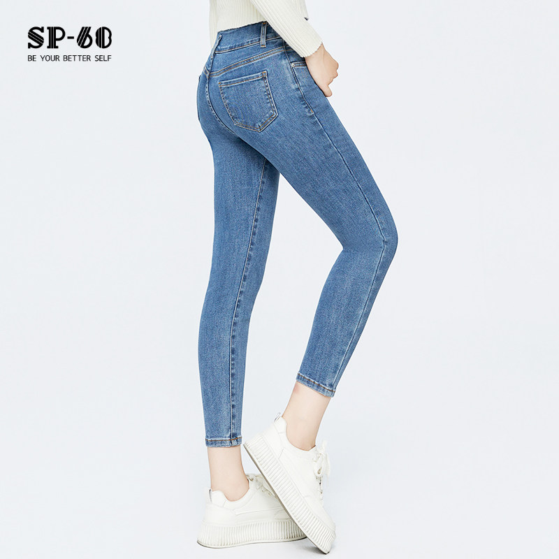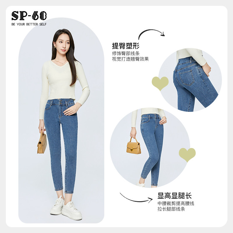 修身 sp68牛仔裤 新款 高弹力2024秋季 高腰九分小脚蓝色女显瘦铅笔裤