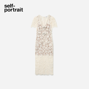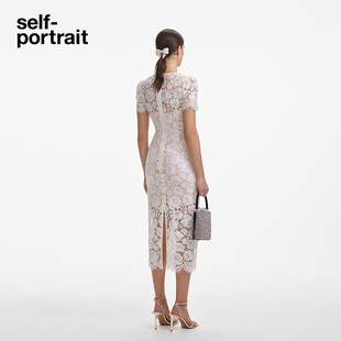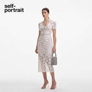self portrait2025春夏订婚宴仿珍珠设计蝴蝶结白蕾丝连衣裙