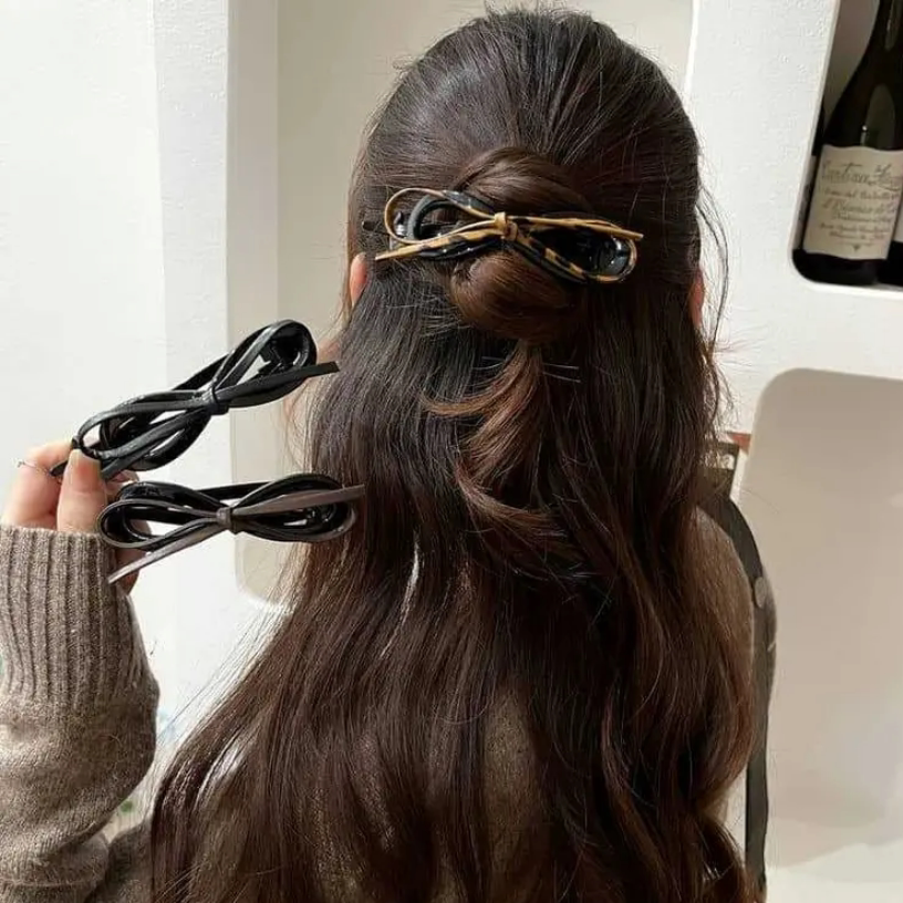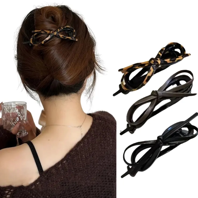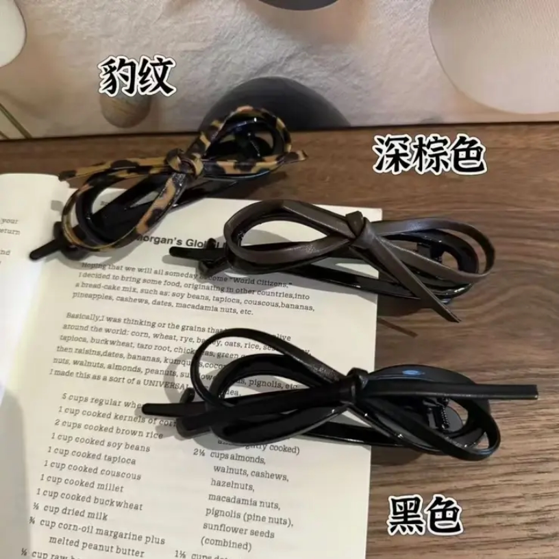 款 新品 气质皮质蝴蝶结扭扭夹女后脑勺盘发高级感一字夹2025年热卖