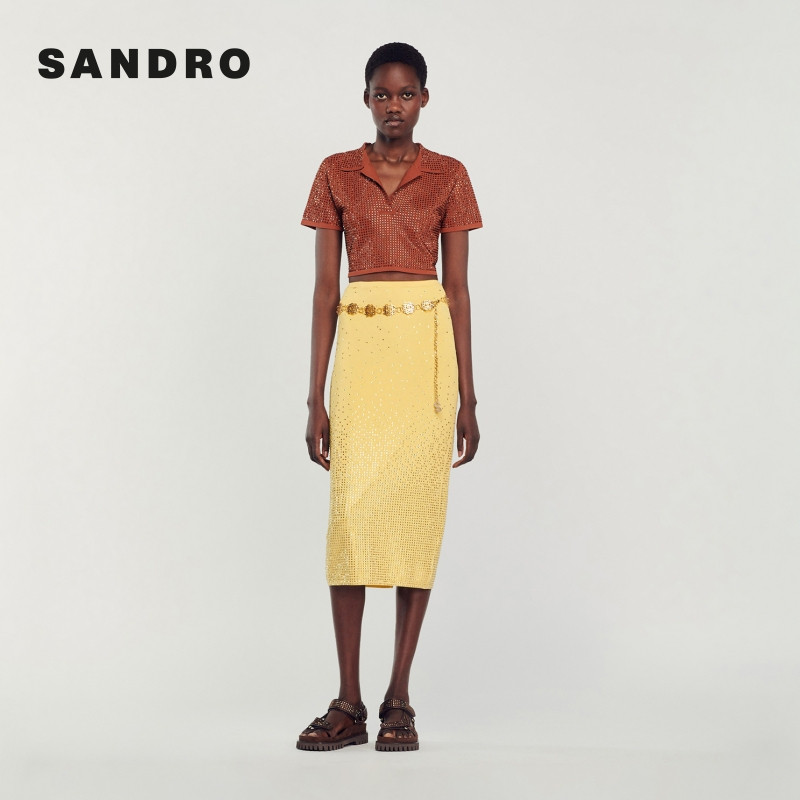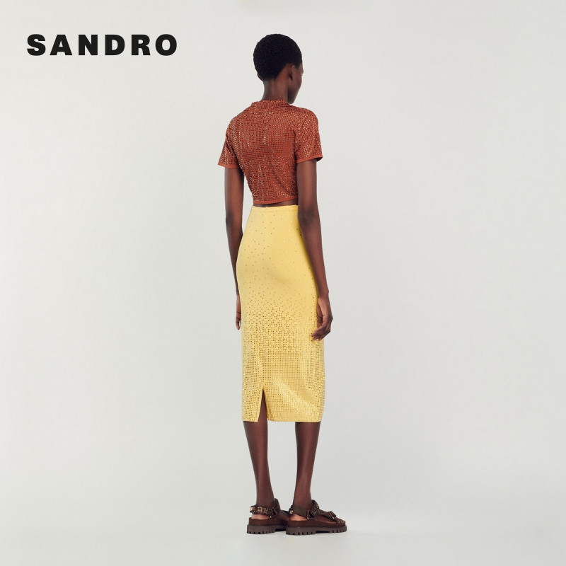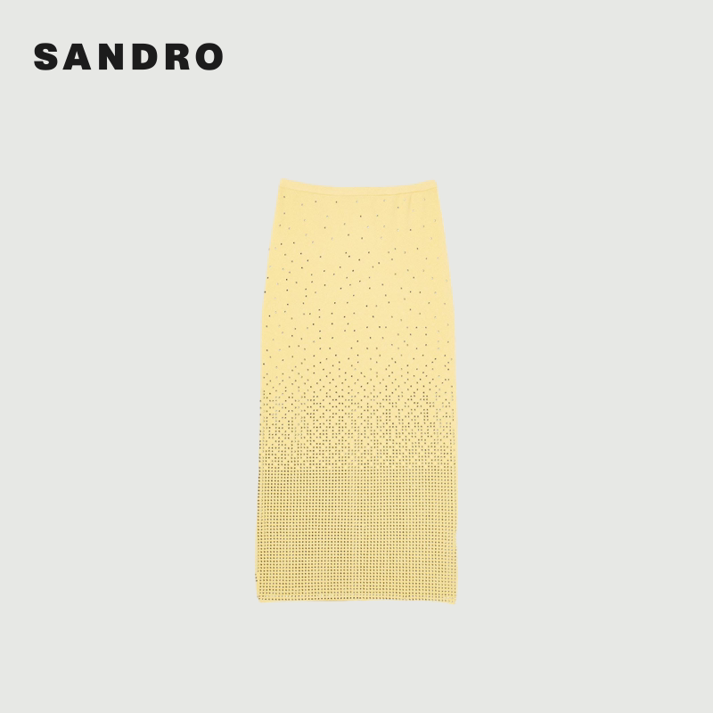 气质黄色仿钻直筒长款 SANDRO 时尚 法式 包臀半身裙 Outlets秋冬女装