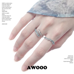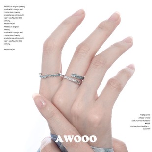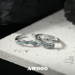 薄荷色肌理纹戒指女ins小众设计高级开口食指情侣套戒指环手饰潮