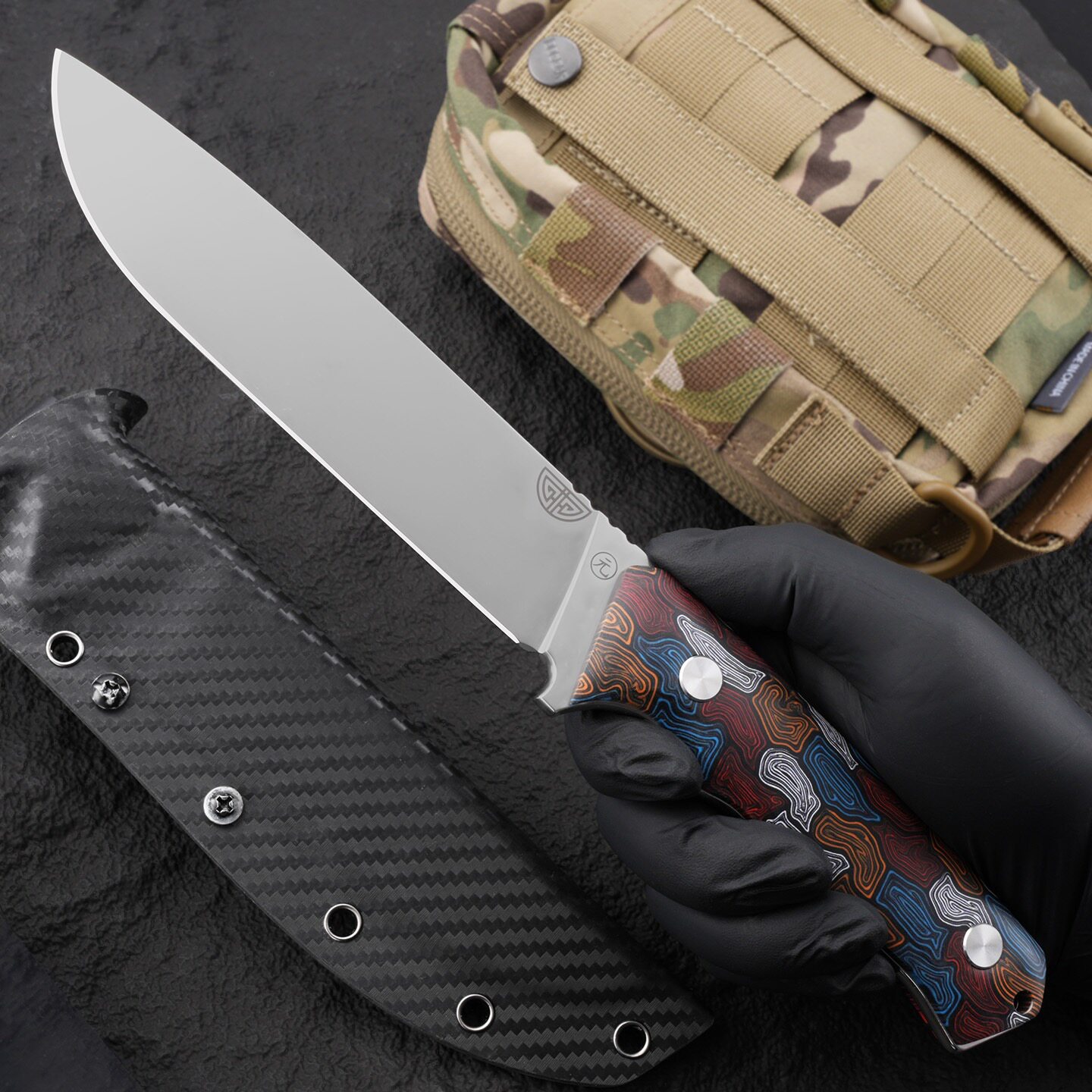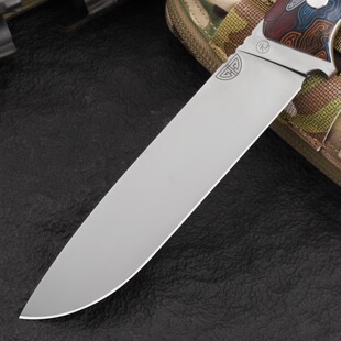 镜面SKH 9高速钢双花色G10柄高硬度全钢一体户外猎直小刀