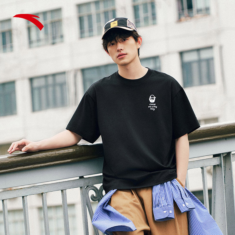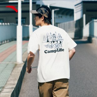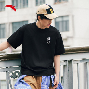 安踏×ZOLA联名情侣圆领白色短袖 宽松纯色休闲印花T恤 t恤男夏季