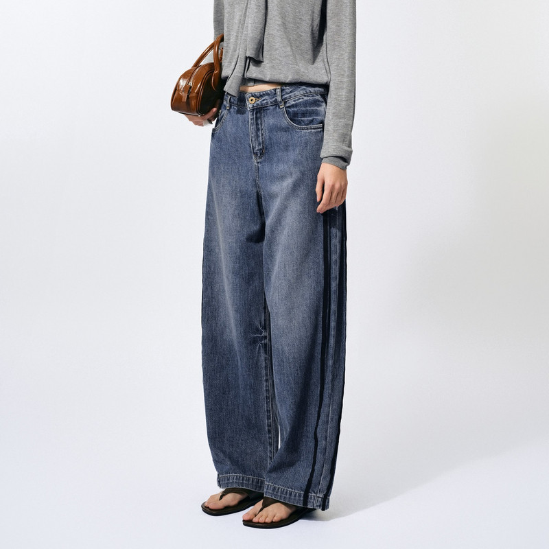 新款 uti织带棉质阔腿牛仔裤 尤缇2025夏季 莫代尔丹宁风休闲裤 女装