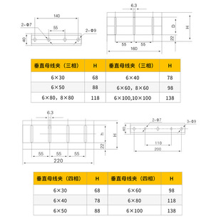 黄色垂直母线夹间距55长160小排托铜排绝缘固定夹PMJ N零母线夹