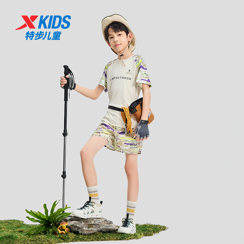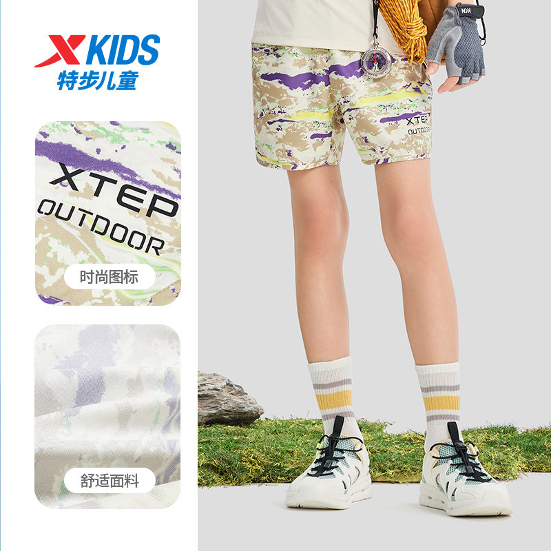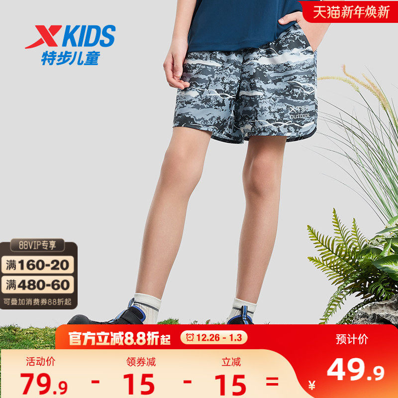 儿童户外迷彩短裤 大童速干五分裤 夏季 男童宽松运动裤 新款 特步童装