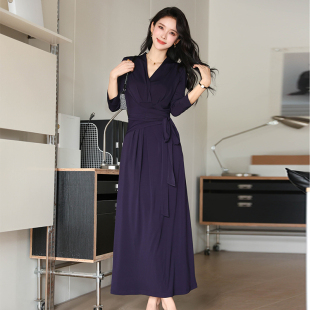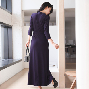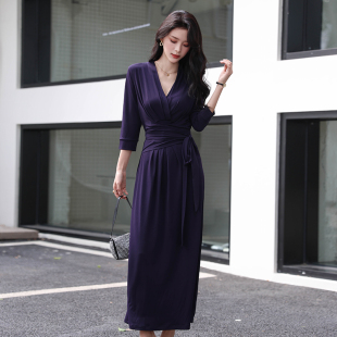 轻奢高级感连衣裙 显瘦弹力套头法式 2026年新款 裹身裙紫色气质修身