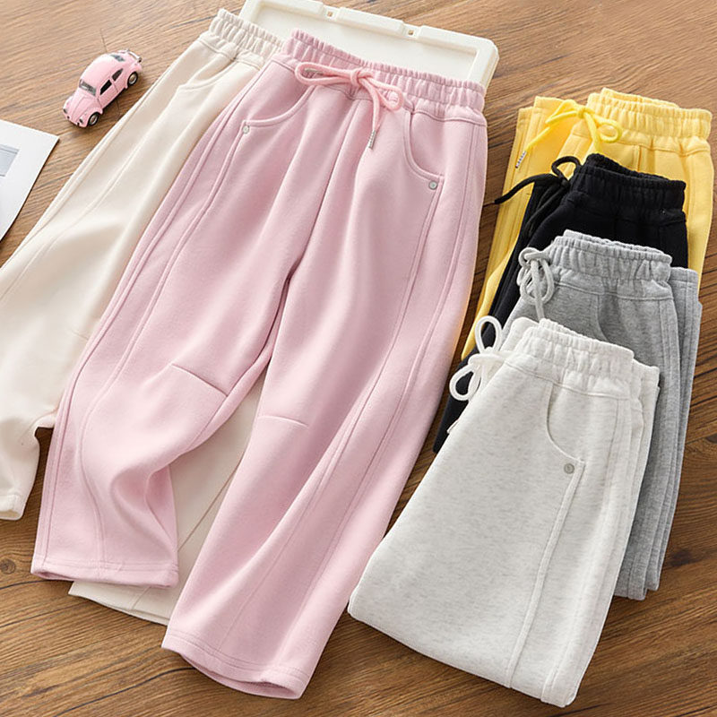 子 秋冬胖妹妹高腰宽松显瘦小个子萝卜休闲裤 加绒九分哈伦裤 女大码