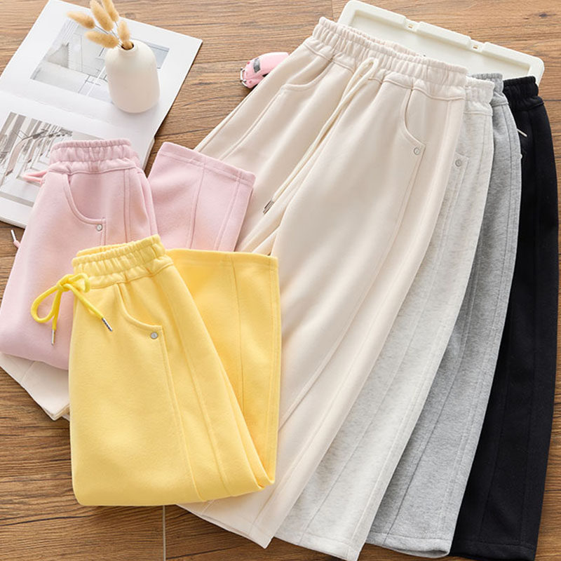 子 女秋冬加绒高腰垂感直筒拖地休闲裤 300斤胖mm大码 雪尼尔阔腿裤