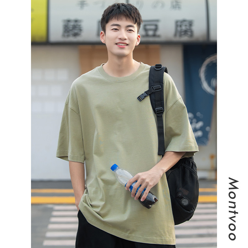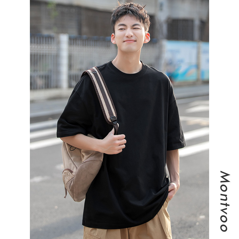 上衣潮 重磅日系男生打底半袖 迈特优纯棉白色短袖 t恤男女夏季