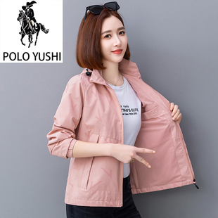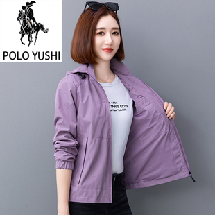 保罗春秋季 休闲连帽风衣户外防风冲锋衣潮 女士百搭短外套2025新款