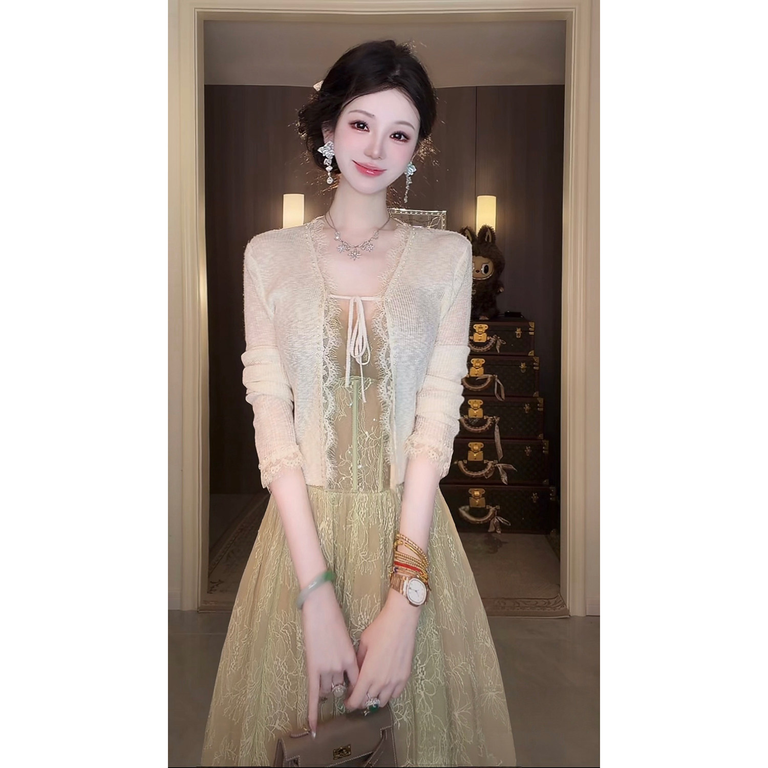 防晒空调百搭蕾丝花边系带清爽针织开衫 长袖 外套女 夏季 Sun雅乔