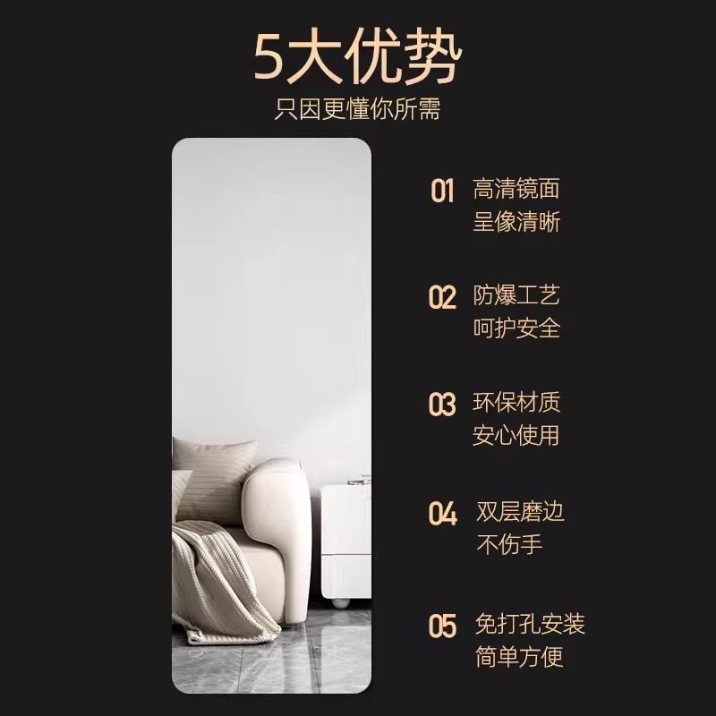 亚克力软镜子贴墙自粘隐藏衣柜镜面贴穿衣镜门后高清免打孔全身镜