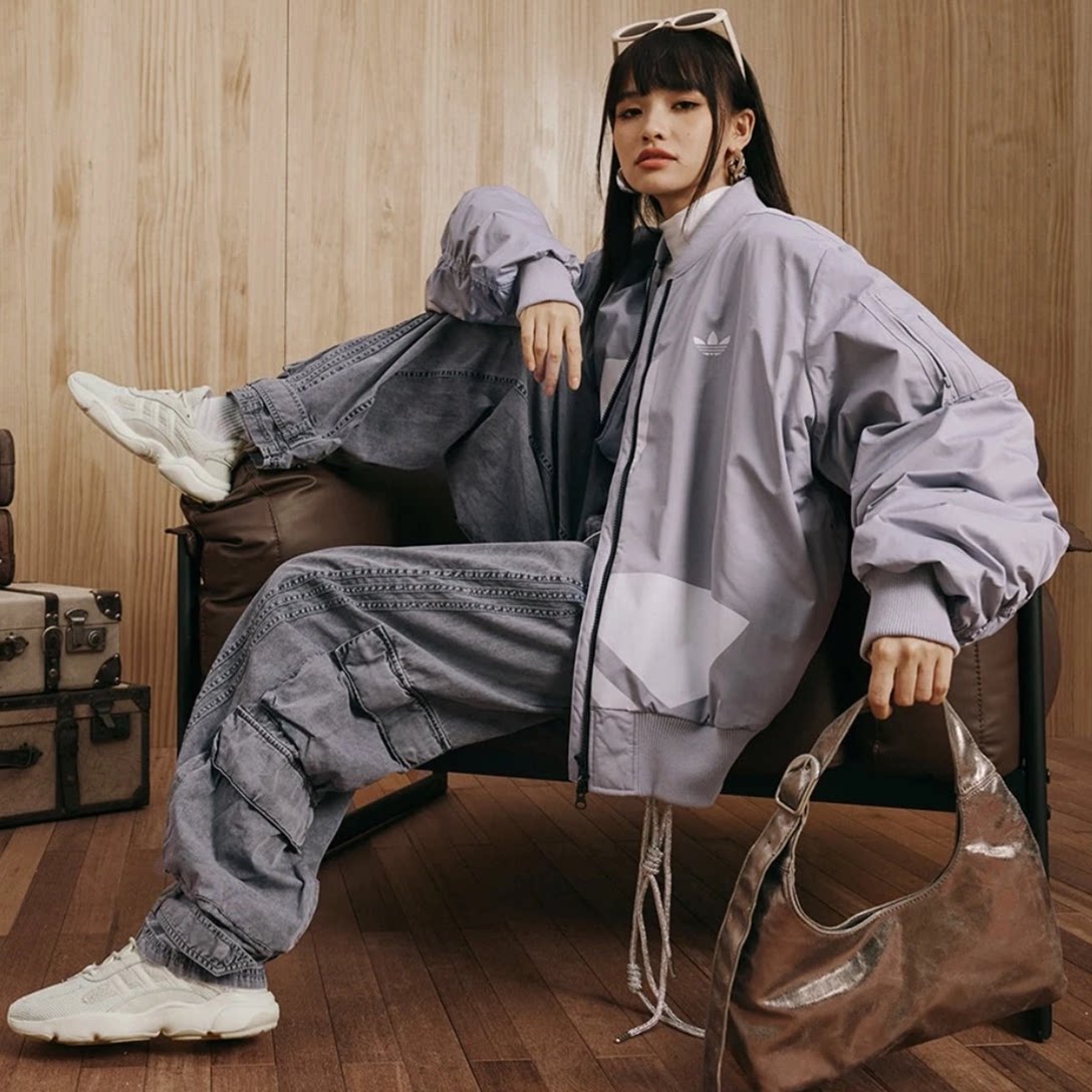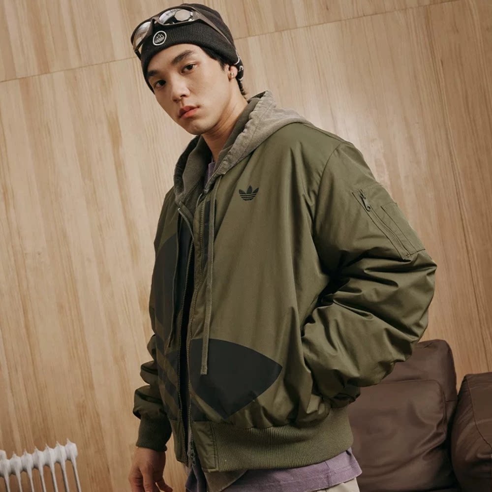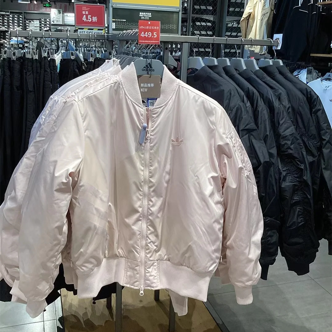 阿迪达斯外套男女三叶草大LOGO宽松运动休闲立领薄棉服夹克JL8381
