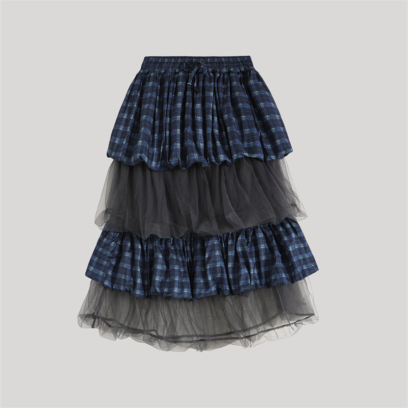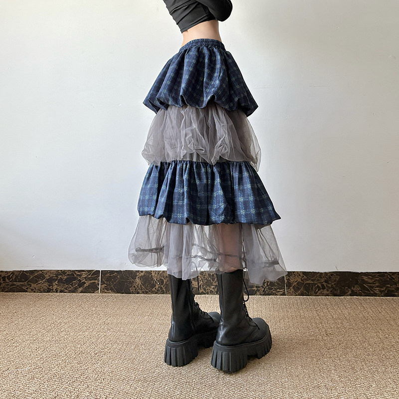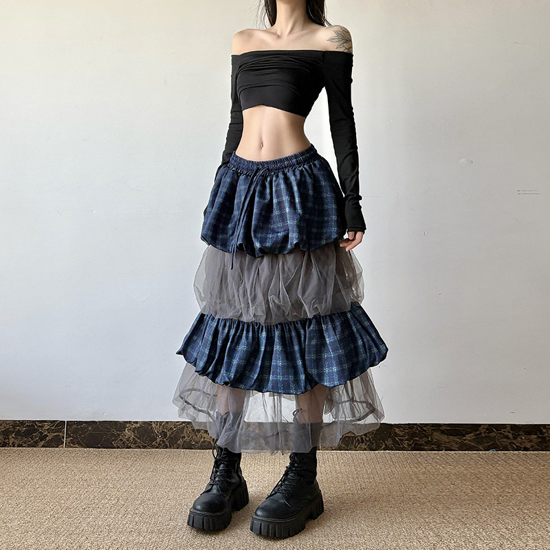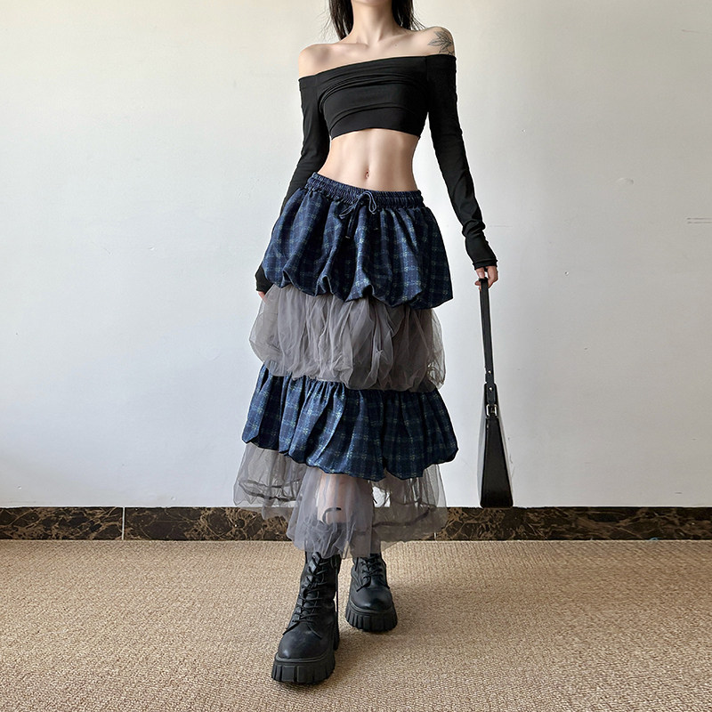 gagaopt透视网纱拼接半身裙女自制高腰抽绳松紧腰修身 显瘦蛋糕裙