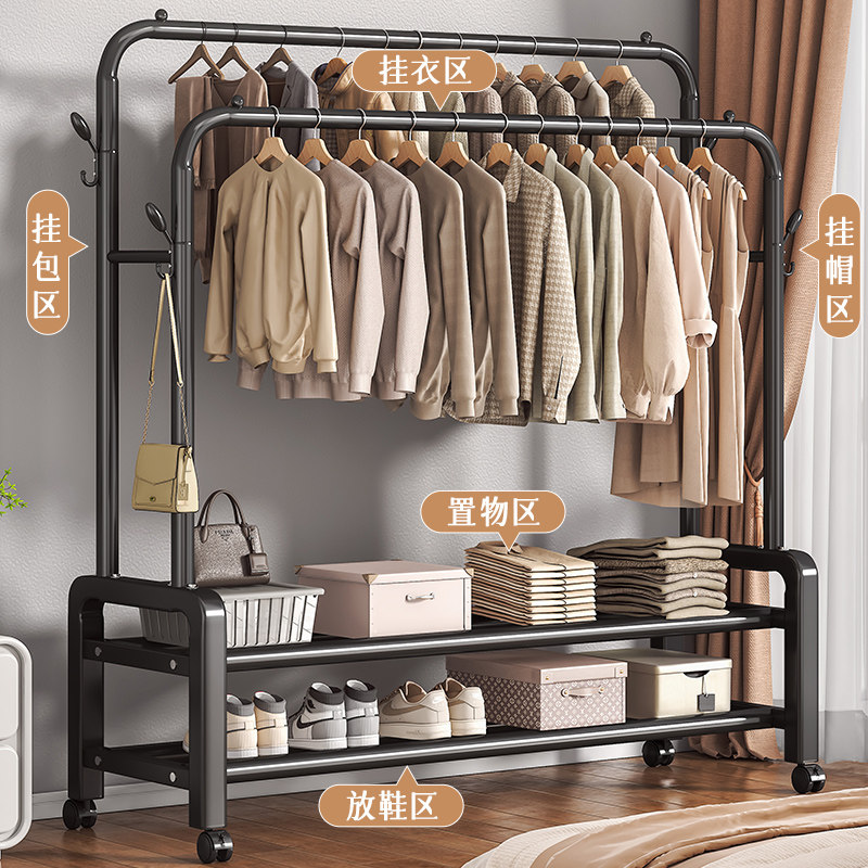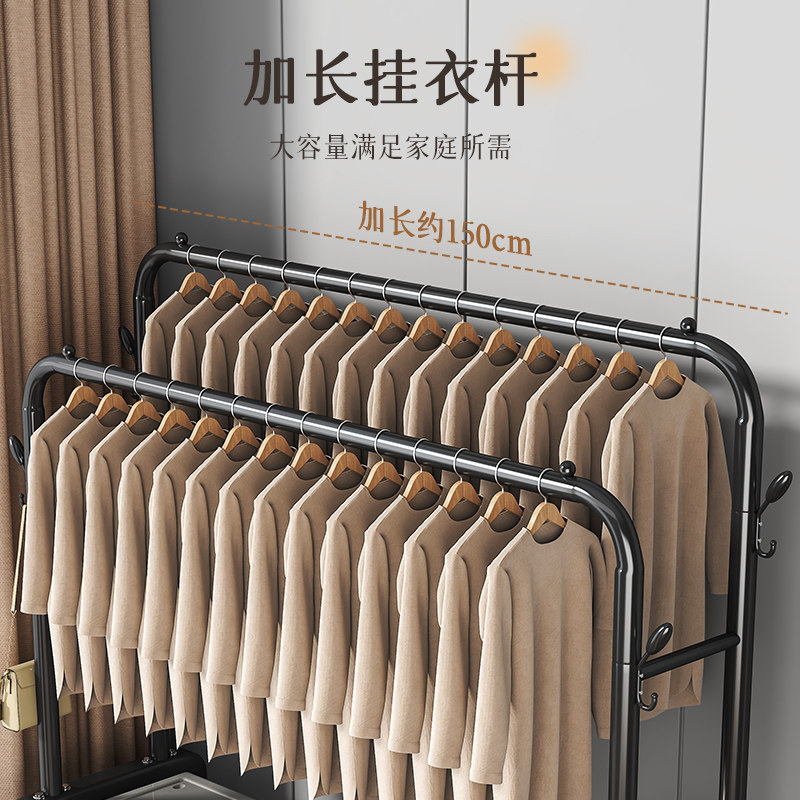 晾衣架落地卧室家用简易衣帽架可移动室内挂衣架结实耐用衣服架子