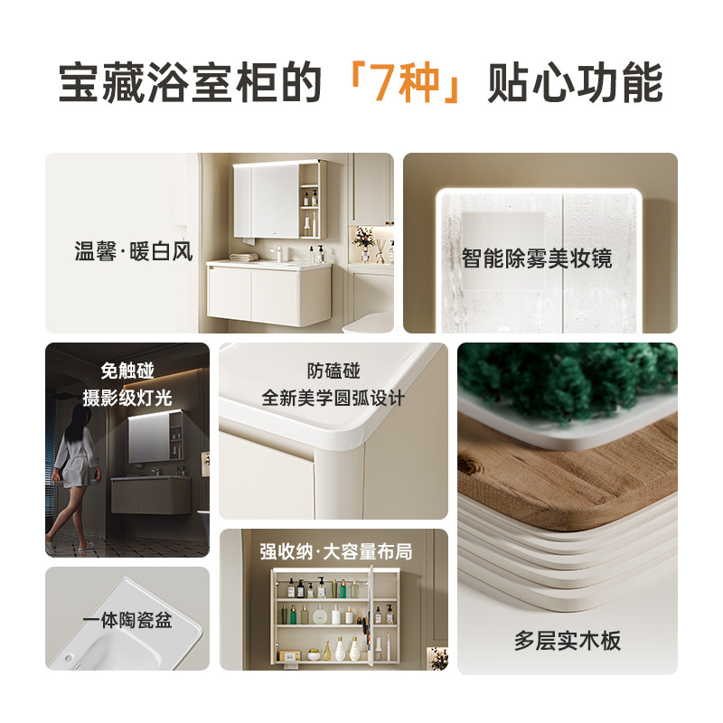 浪鲸卫浴浴室柜组合奶油风一体盆美妆镜柜小户型0230 国补15%