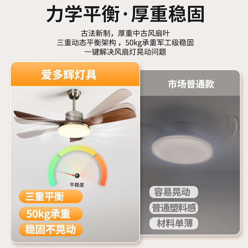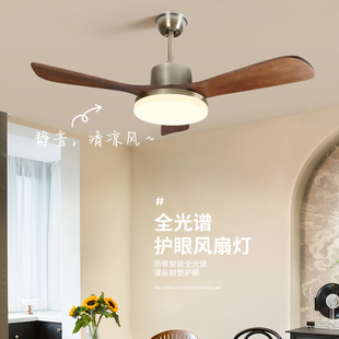 中古风吊扇灯风扇灯静音胡桃木色abs扇叶高端智能客厅卧室餐厅灯